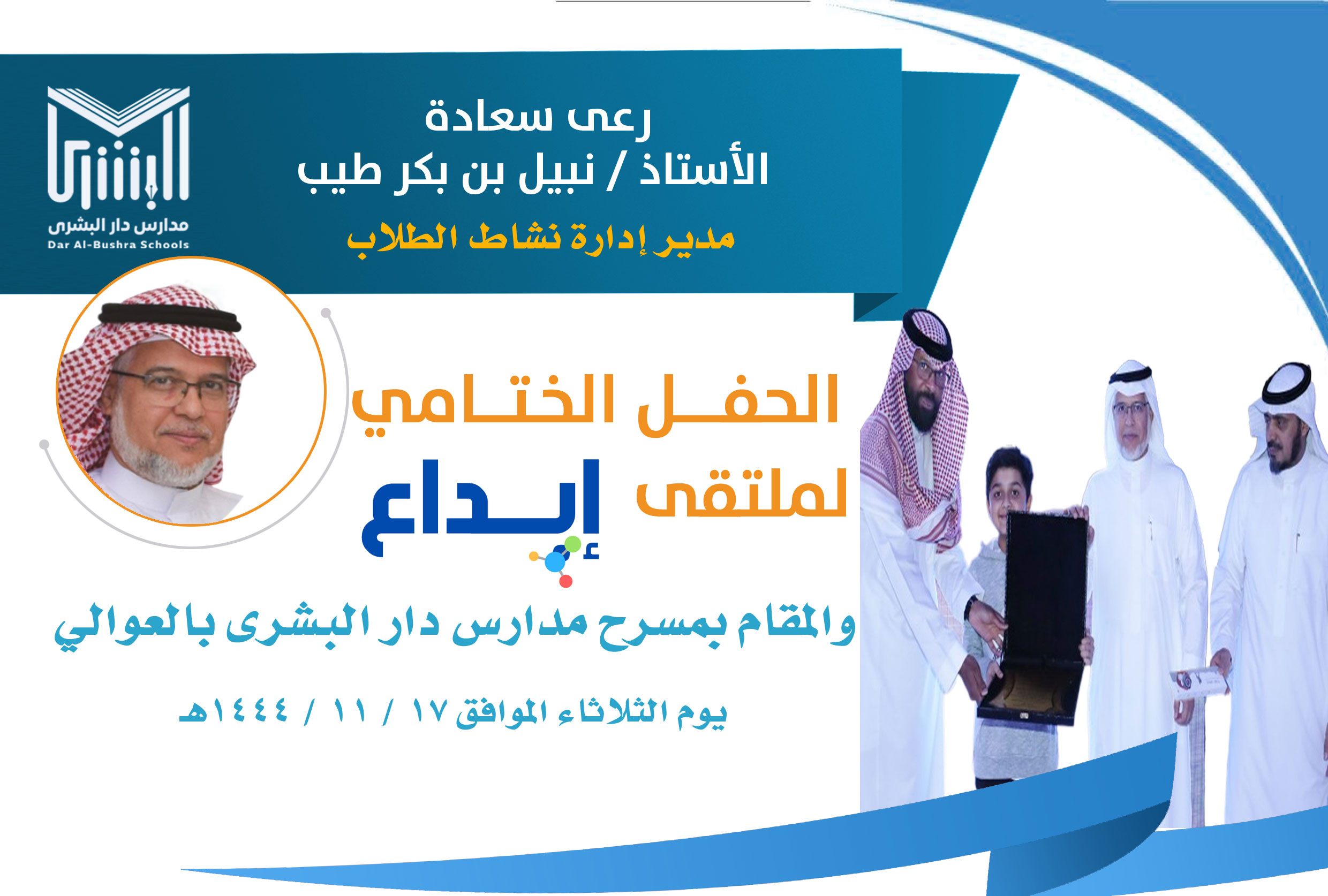 الحفل الختامي لملتقى إبداعبرعاية مدير إدارة النشاط الطلابيالأستاذ/ نبيل بن بكر طيب المشرف العام على المدارسد.عبد الرحمن بن حمود الغامدي
