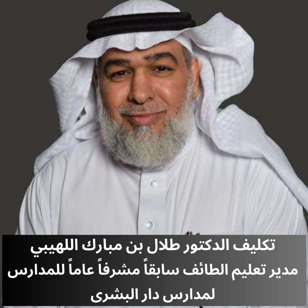 تكليف الدكتور طلال بن مبارك اللهيبي مدير تعليم الطائف سابقاً مشرفاً عاماً لمدارس دار البشرى من هو الدكتور طلال مبارك اللهيبي إن الدكتور طَلال مبَارك…