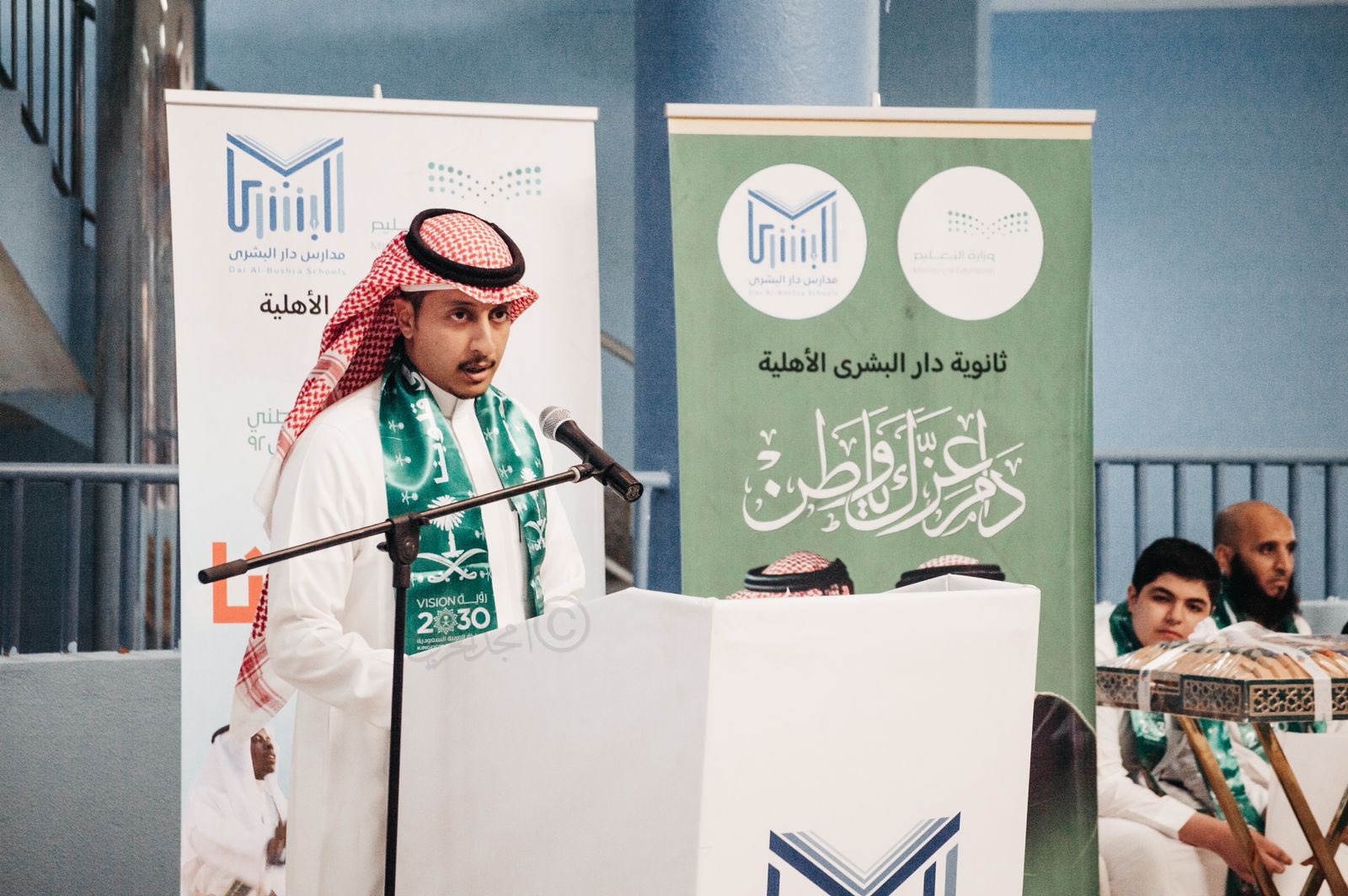 جانب من حفل اليوم الوطني المقام بمسرح مدارس دار البشرى القسم المتوسطتحت اشراف لجنة النشاط الطلابيمدير القسم المتوسطأ.محمد العماري