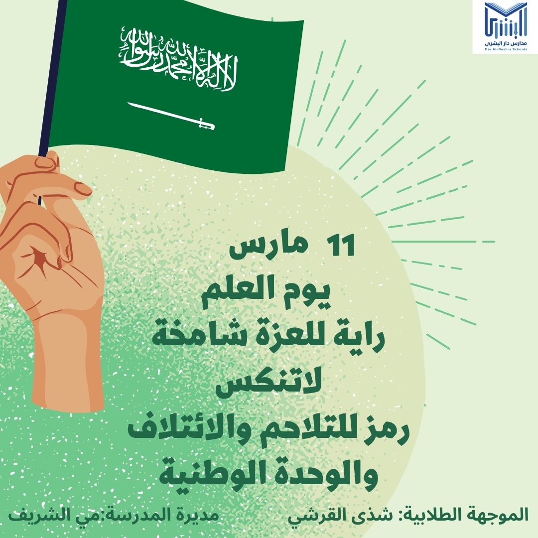 اقامت الروضة احتفال ليوم العلم السعودي يوم الإثنين الموافق ١-٩-١٤٤٥هـوذكر ما يتميز به من مواصفات هوا العلم الوحيد الذي لاينكس، مكتوب عليه شهادة التوحيد لترسيخ…