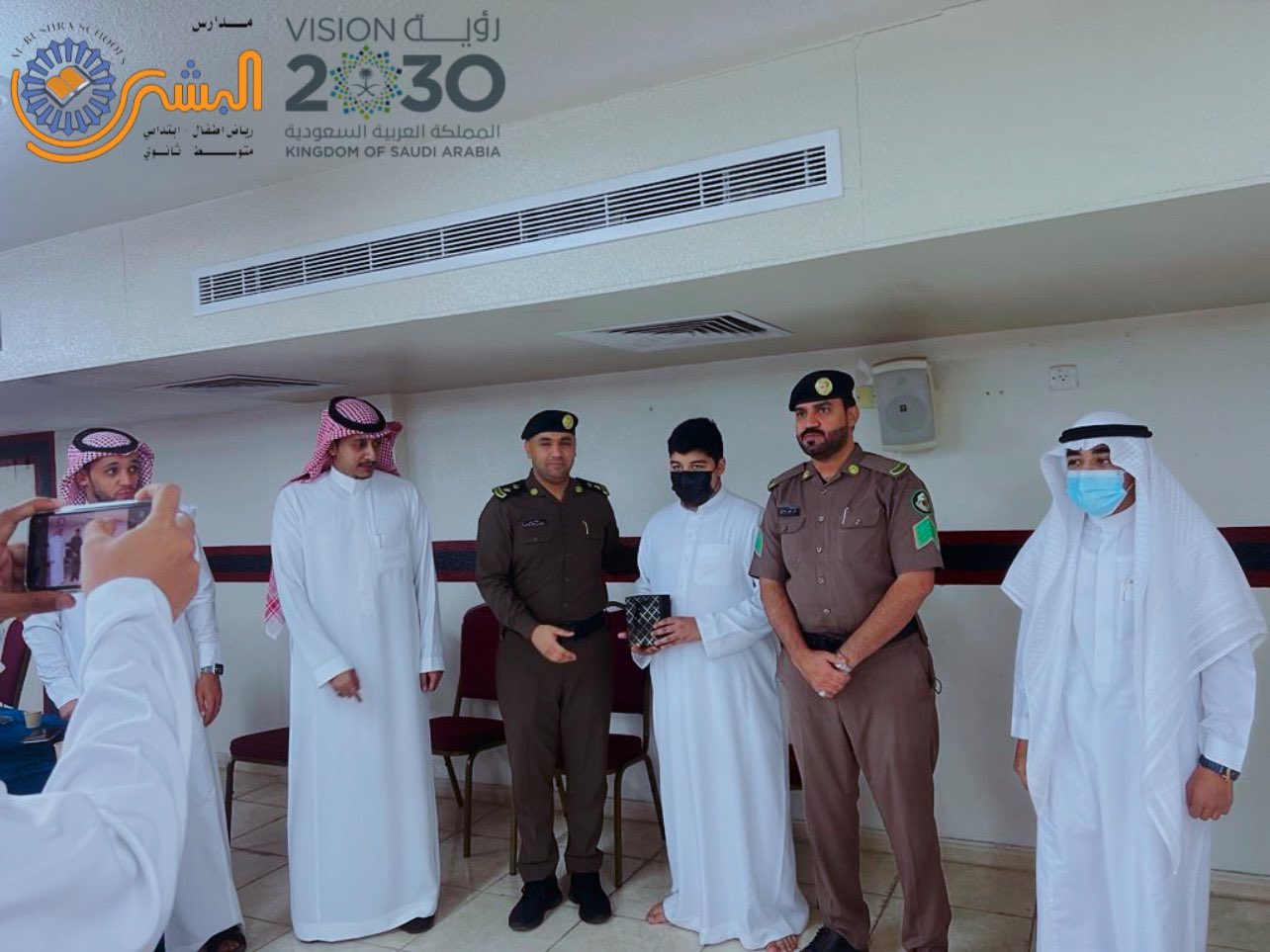 وفي ختام الندوة قدم مجموعة من طلاب المدرسة ونيابة عن بقية زملائهم وبإشراف من رائد النشاط الأستاذ/ سليم البطاوي. هدايا تعبر عن شكرهم للفريق الذي قدم لهم برنامجاً توعوياً يهدف لسلامتهم المرورية