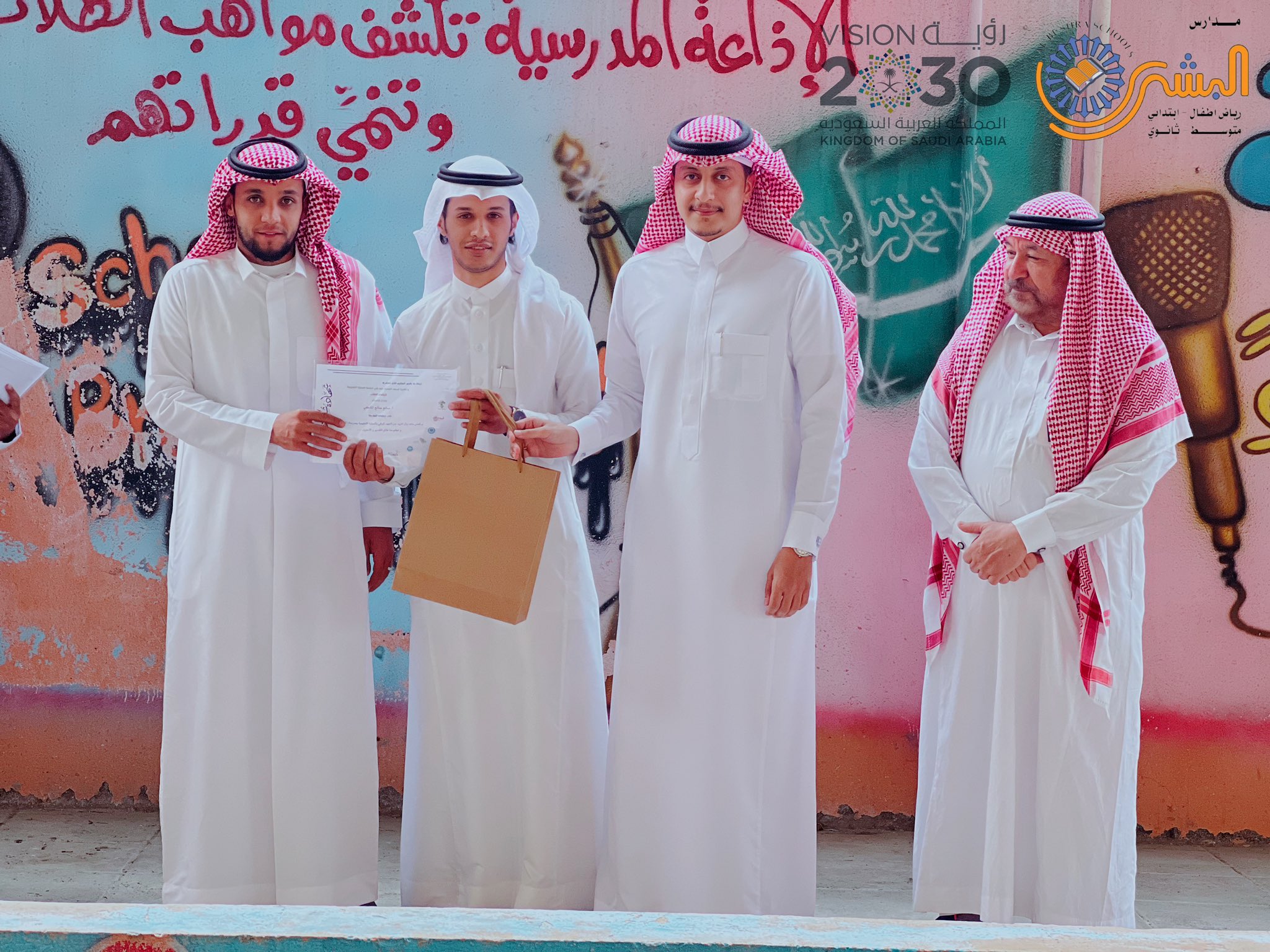 كرم مدير المدرسة أ/ مهند الحصيني فرسان التميز ( معلمين ) للفترة الأولى من الفصل الدراسي الثالث و هم: أ/ صالح المالكي أ/ عرفات حسن أ/ ياسر الشربيني أ/ مجذوب المأمون أ/ أحمد صلاح متمنياً لهم مزيداً من التوفيق والنجاح