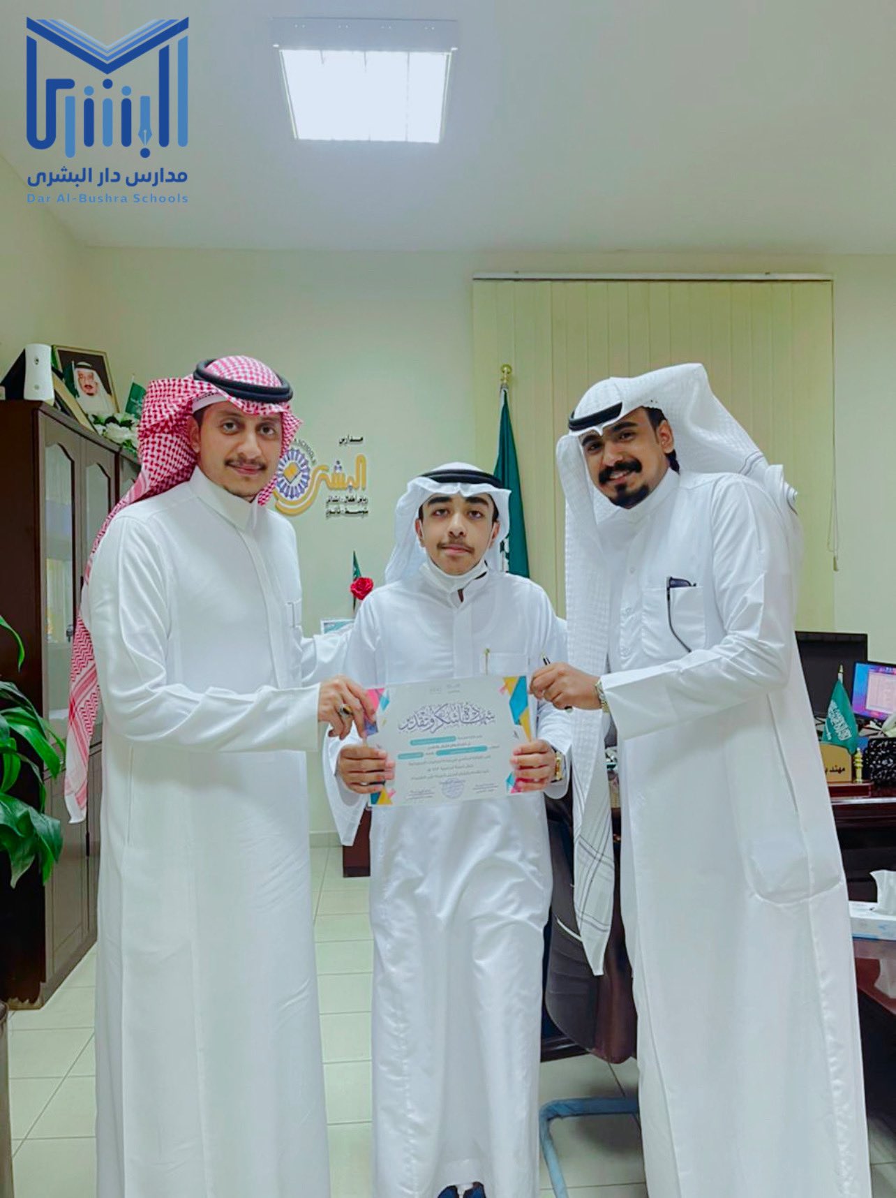 كرّم كلاً من: الأستاذ/ أحمد المالكي (معلم القرآن الكريم) والأستاذ/ عماد الحربي (معلم الدراسات الاجتماعيات) طلابهم المتميزين خلال العام الدراسي وذلك لتحفيزهم لمواصلة الجد والاجتهاد وشحذ همم البقية لتقديم مزيداً من العطاء.