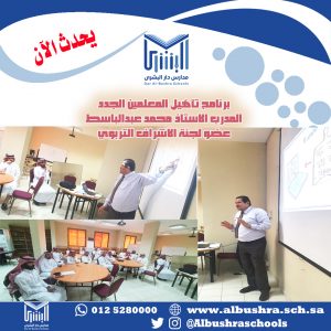 #يحدث_الان بمدارس دار البشرى استمرار برنامج تأهيل المعلمين الجدد تقديم المشرف التربوي الأستاذ/ناصر خليل المقالة السابقة برنامج تأهيل المعلمين الجدد المقالة التالية التدقيق الخارجي لاعتماد الجودة