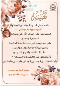 قامت ثانوية البشرى الأهلية قسم البنات بتهئية المكان و الجو المناسب لاستقبال الطالبات لتقديم اختبار نهائية الفصل الدراسي الأول متمنين لهم دوام التوفيق و النجاح . المقالة السابقة المركز الاول في مسابقة المسرح المقالة التالية مهرجان الألوان في الروضة