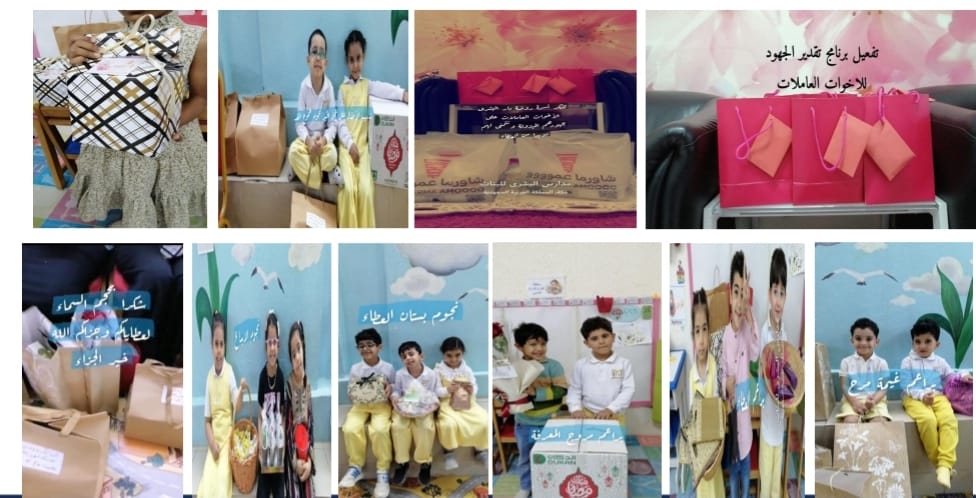 شكر وتقدير للاخوات العاملات لما بذلوه من جهود وإدخال البهجة والسرور إلى قلوبهم وتدريب الأطفال على البذل و العطاء