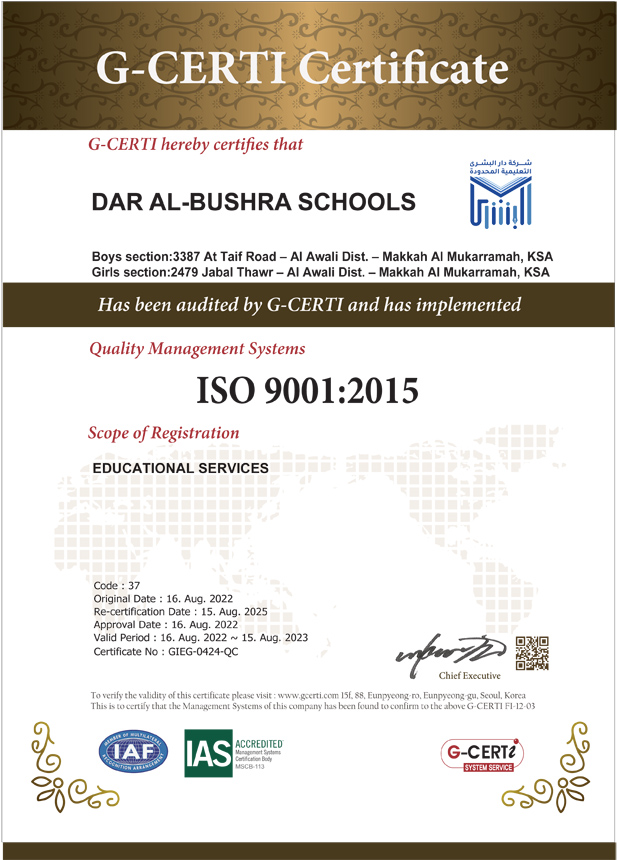 شهادة خاصة بجودة المؤسسات والشركات التعليمية والتدريبية وقد حصلنا على هذه الشهادة من خلال تطبيق معاير الجودة ، كما اننا طبّقنا منهجا دراسيا لتعزيز وتطوير المهارات من خلال التعليم والتدريب والبحث .